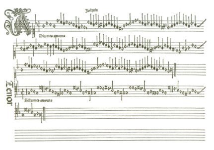 Im Jahre 1501 veröffentlichte Ottaviano de’ Petrucci sein „Harmonice Musices Odhecaton“, der erste mit beweglichen Metalltypen gedruckte Notendruck der Musikgeschichte. Dass er damit ein neues Kapitel der Musikgeschichte öffnete, dürfte dem Drucker zu seiner Zeit noch nicht klar gewesen sein – ihn mochte zuerst einmal das unternehmerische Risiko interessiert haben, das er mit seinem Druck eingegangen war, dürften doch die Kosten für die Herstellung dieser ersten Auflag eines Musikdruckes erheblich gewesen sein. |