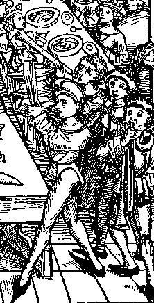 Musiker, die Trompete, Busine, Schalmei und Pommer für die „laute